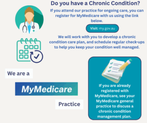 MyMedicare is an initiative to align you with services provided through your GP at the Mostyn Street Clinic. Register here.